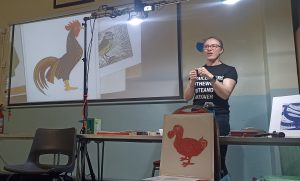 Alix Almond came to demonstrate her linocut print making techniques to the society in November 2025. A former teacher, Alix is now a full time linocut artist focussing on animals and birds and gave an interesting demonstration about the process of cutting and printing.
