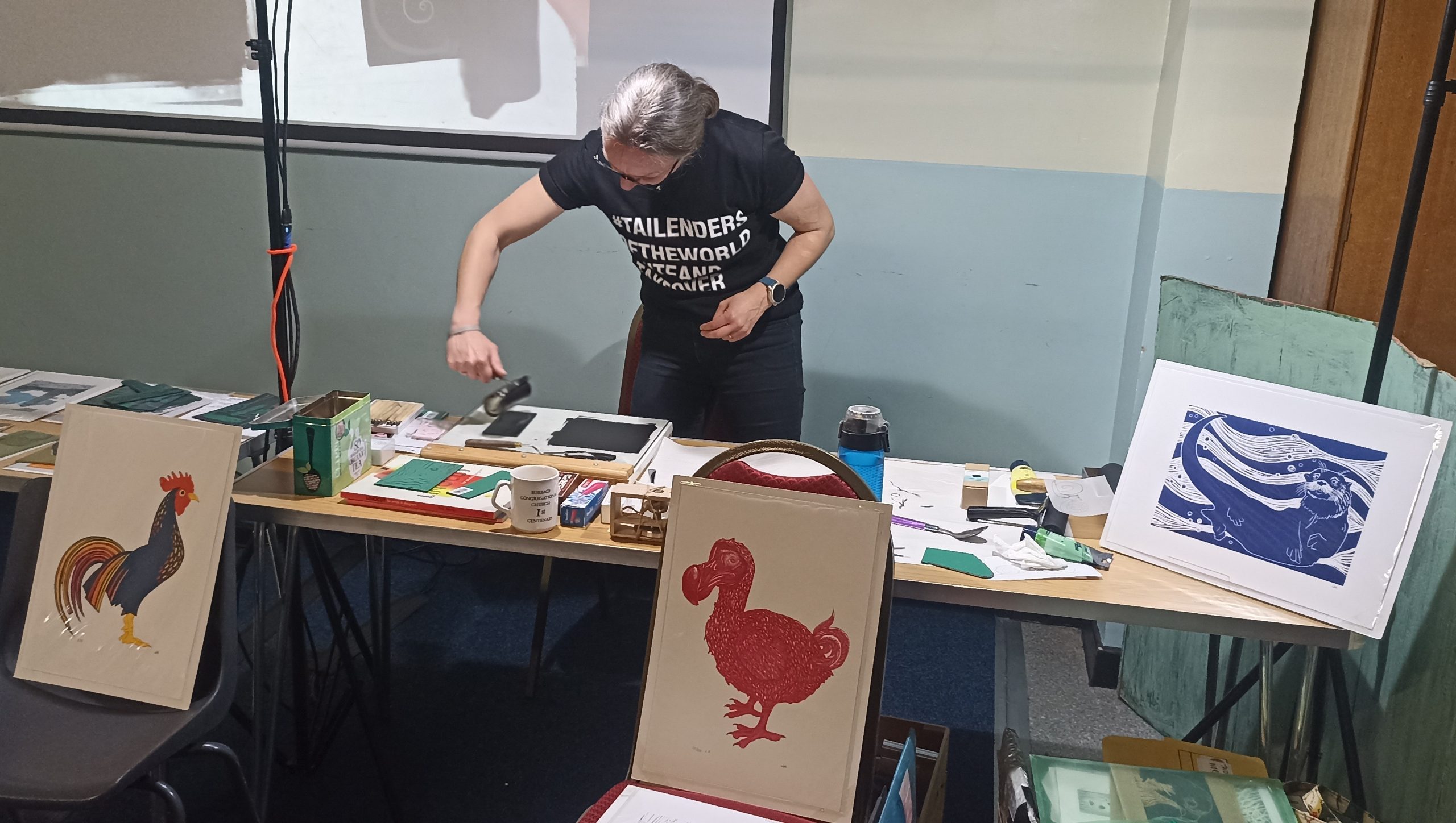 Alix Almond came to demonstrate her linocut print making techniques to the society in November 2025. A former teacher, Alix is now a full time linocut artist focussing on animals and birds and gave an interesting demonstration about the process of cutting and printing.